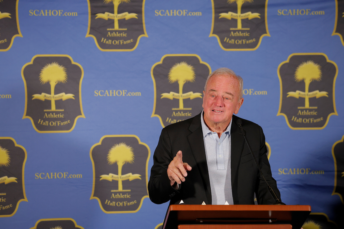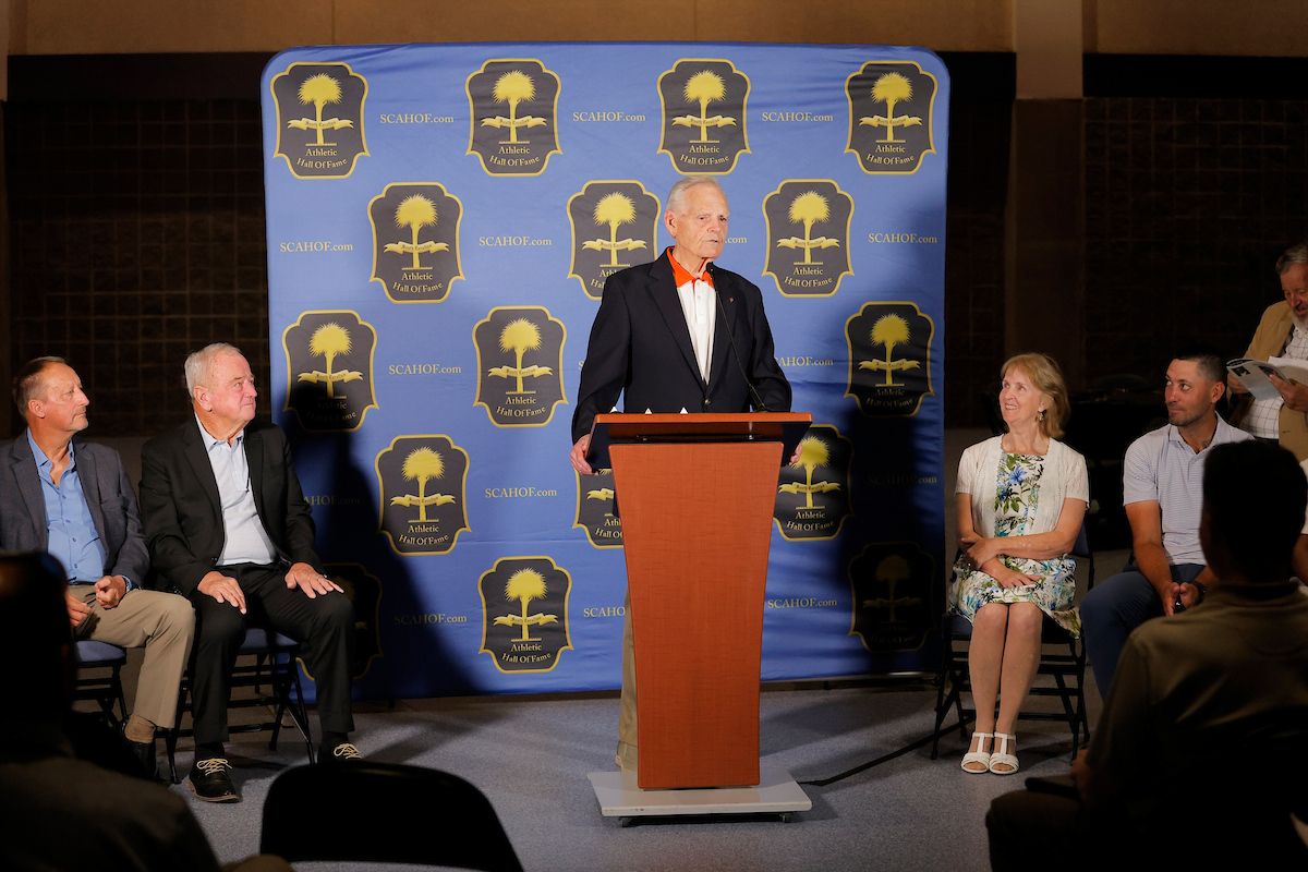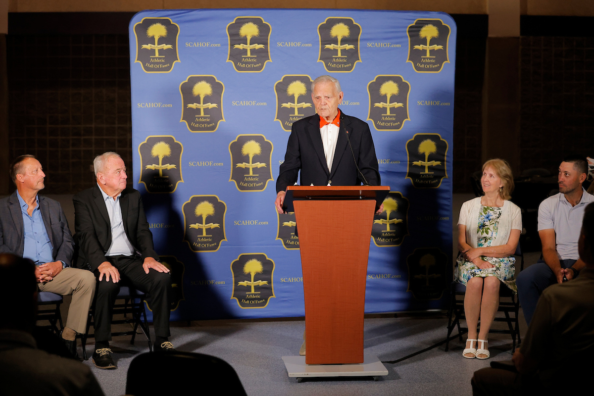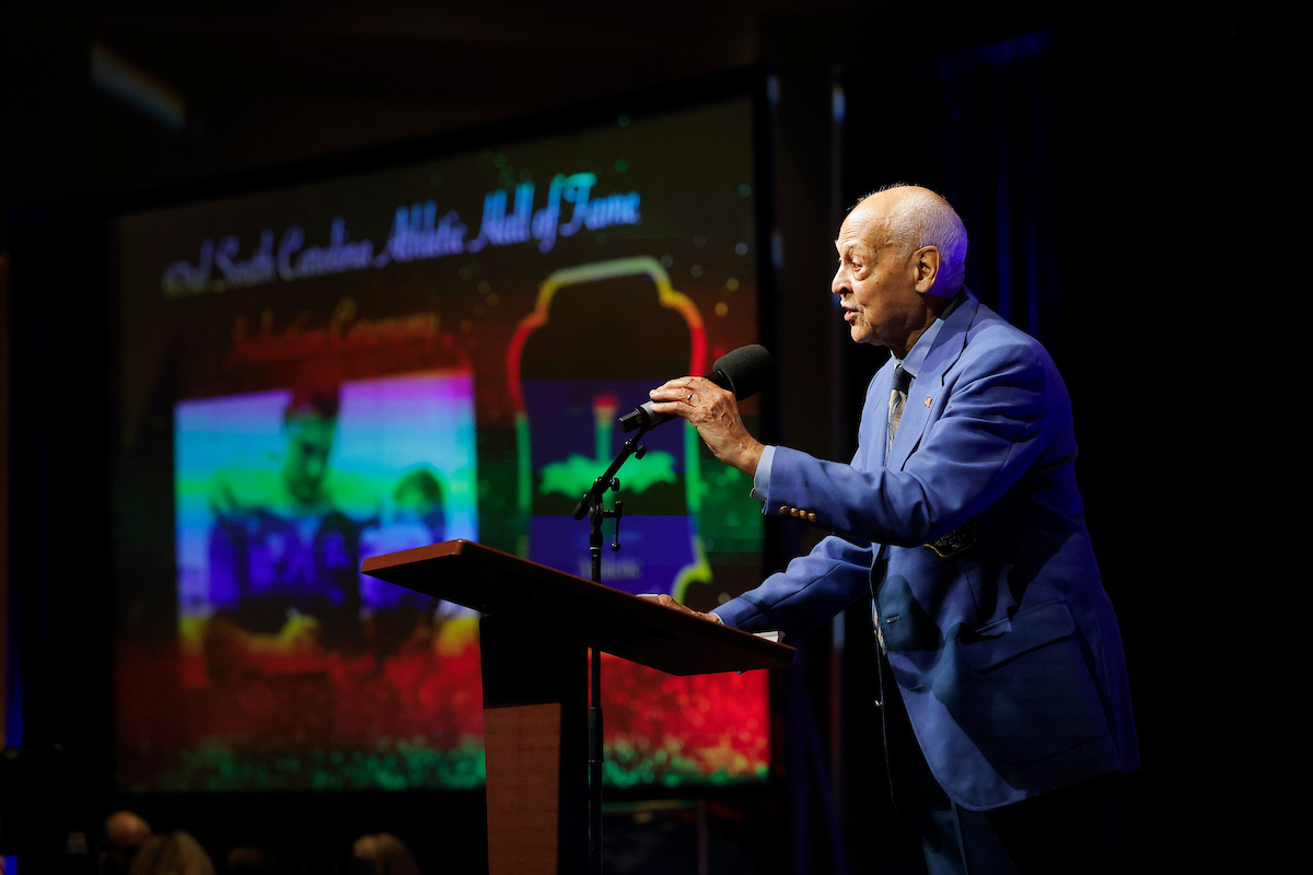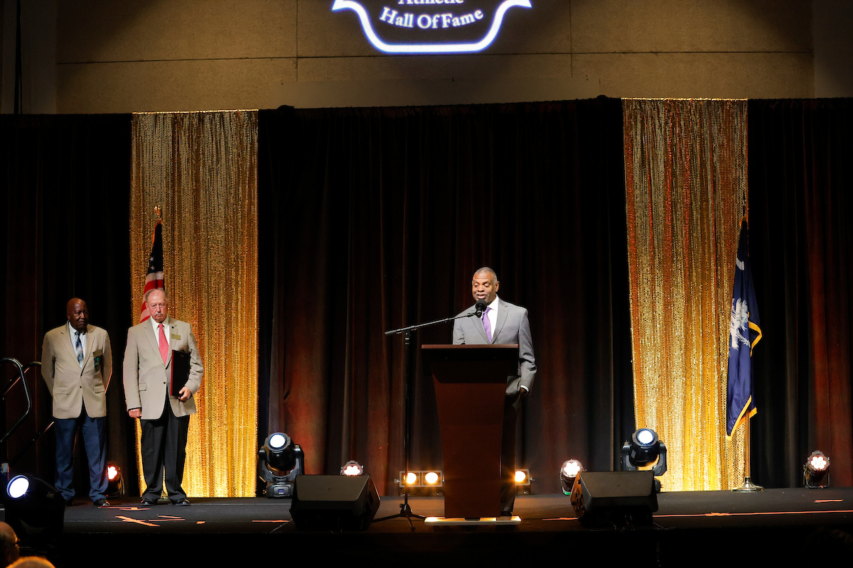 For more than 40 years, one of the many highlights of the South Carolina Athletic Hall of Fame’s annual induction ceremony features the current president and vice president donning an official SCAHOF blazer on the newest inductee while on the stage and prior to addressing the audience.