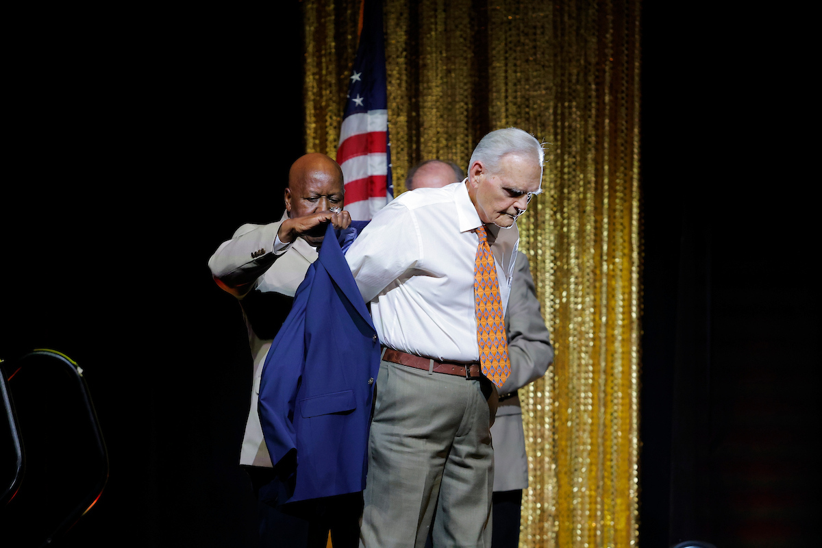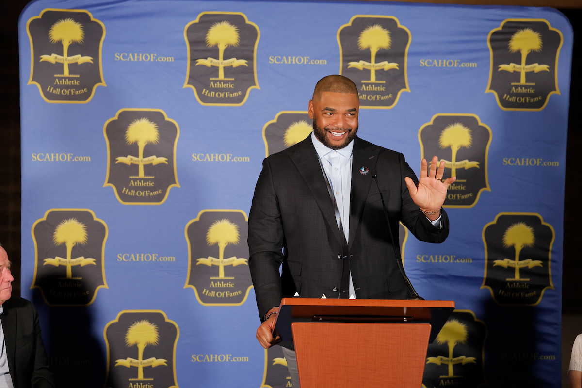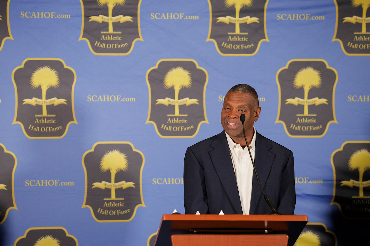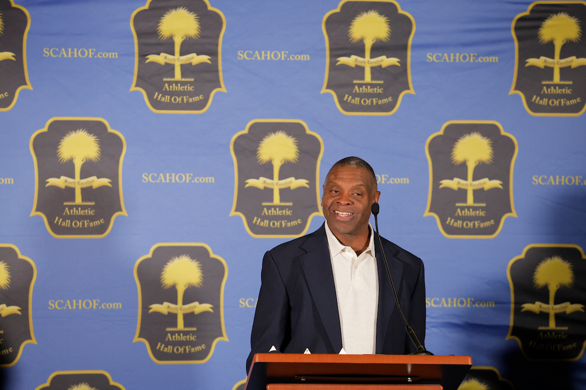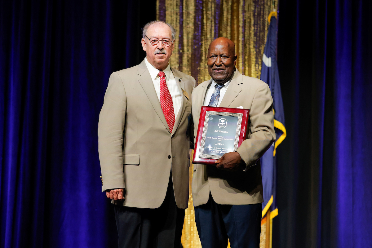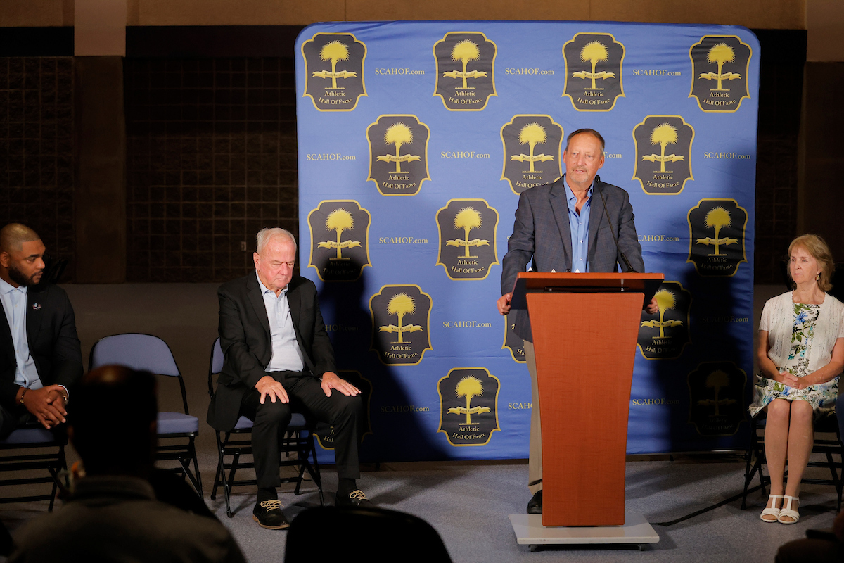 For more than 40 years, one of the many highlights of the South Carolina Athletic Hall of Fame’s annual induction ceremony features the current president and vice president donning an official SCAHOF blazer on the newest inductee while on the stage and prior to addressing the audience.