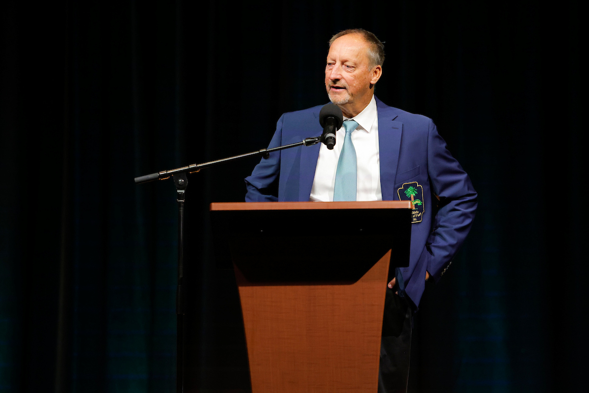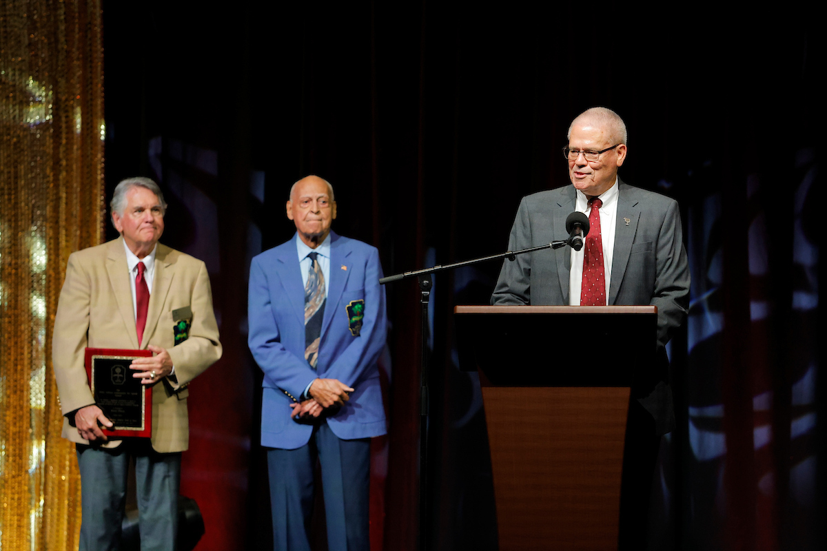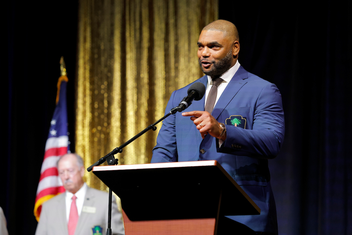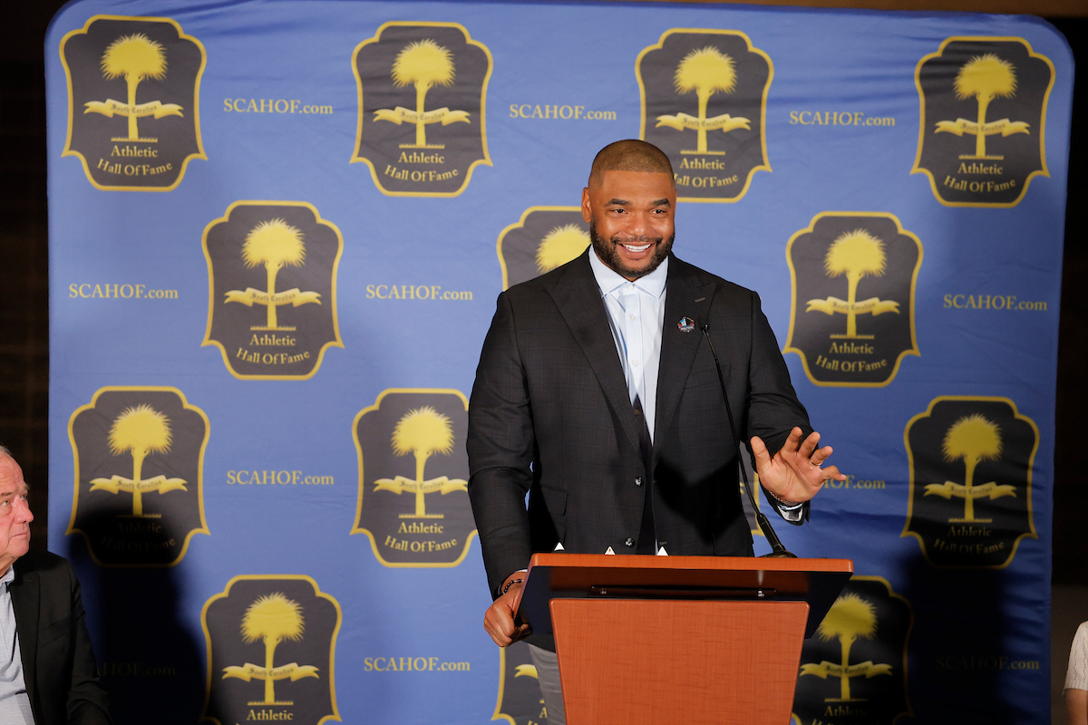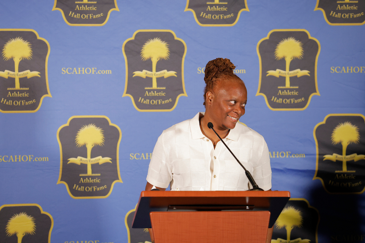 For more than 40 years, one of the many highlights of the South Carolina Athletic Hall of Fame’s annual induction ceremony features the current president and vice president donning an official SCAHOF blazer on the newest inductee while on the stage and prior to addressing the audience.
