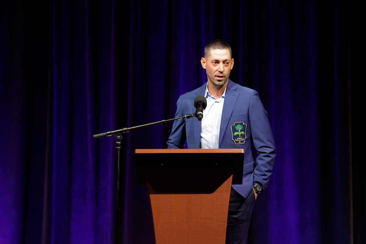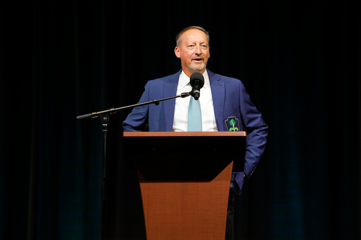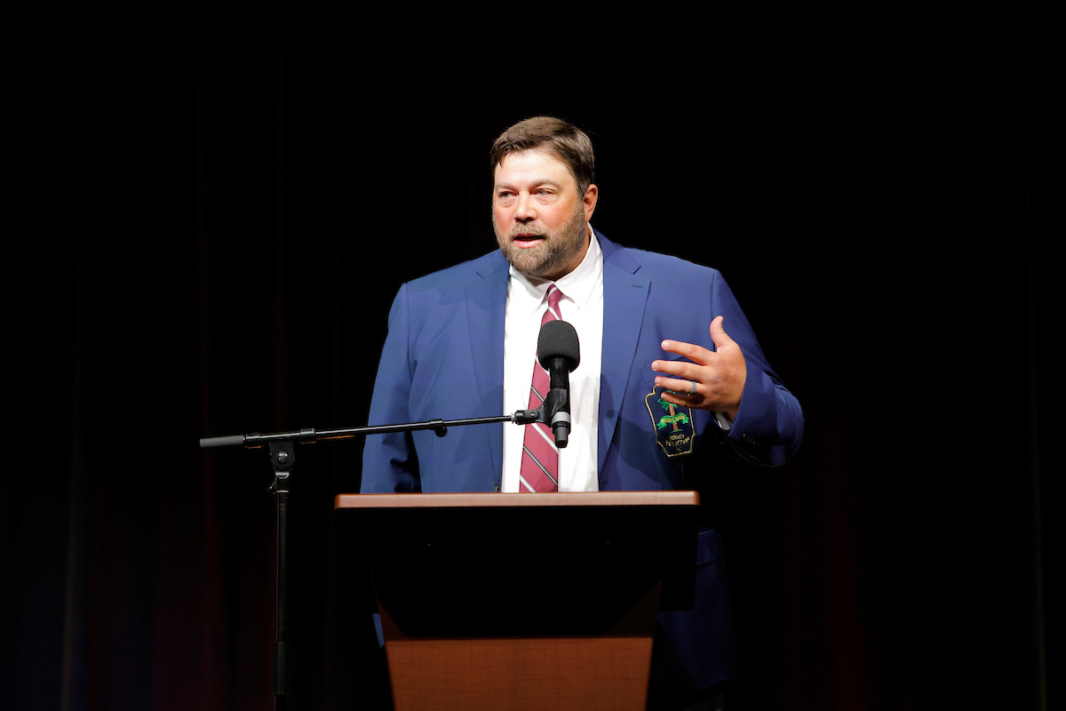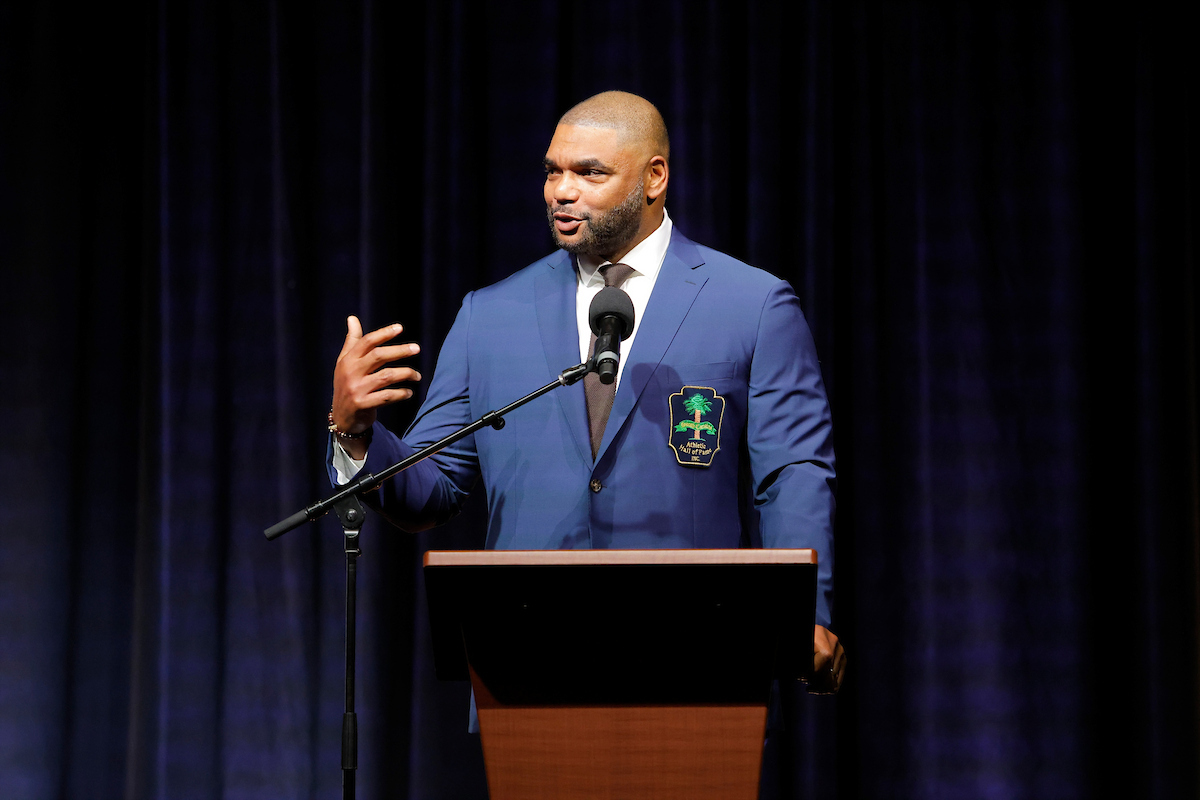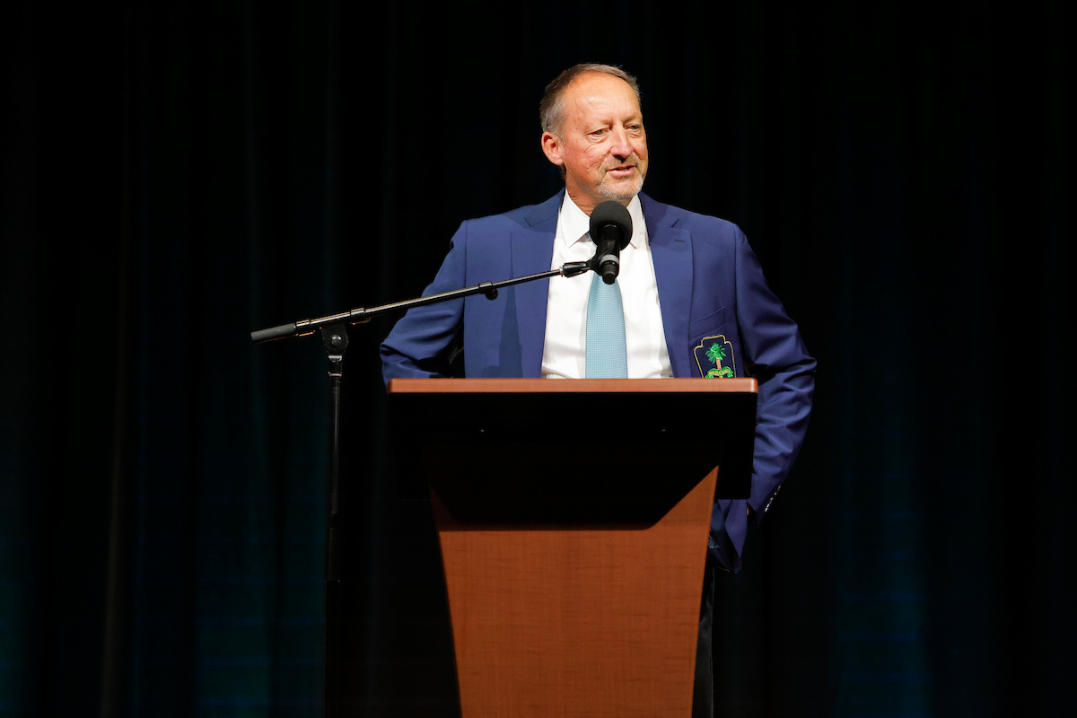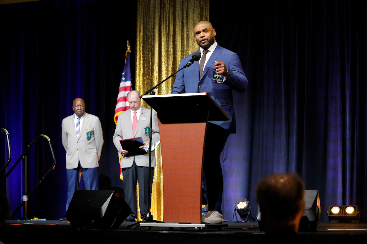 For more than 40 years, one of the many highlights of the South Carolina Athletic Hall of Fame’s annual induction ceremony features the current president and vice president donning an official SCAHOF blazer on the newest inductee while on the stage and prior to addressing the audience.